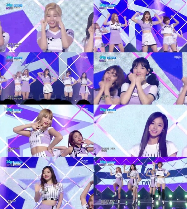트와이스는 이날 청량한 보컬로 상큼한 '치얼업(Cheer Up)' 무대를 꾸몄다. 그들은 재치있는 표정과 귀여운 제스처로 보는 이들을 매료시켰다.