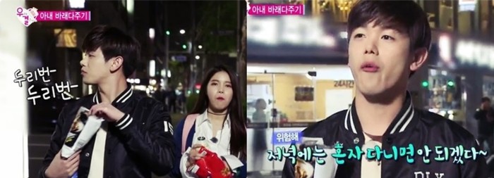 아내 바래다주기편에서는 누군가와 같이 걷는 건 처음이라는 솔라의 말에 좋아하는 에릭남이 아내의 과자를 먼저 뜯어 주며 또 한번 달달함을 과시했다.