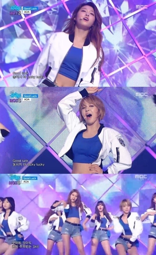 AOA는 지난 28일 방송된 MBC '쇼! 음악중심'에서 신곡 '굿 럭'(Good Luck) 무대를 펼쳤다.