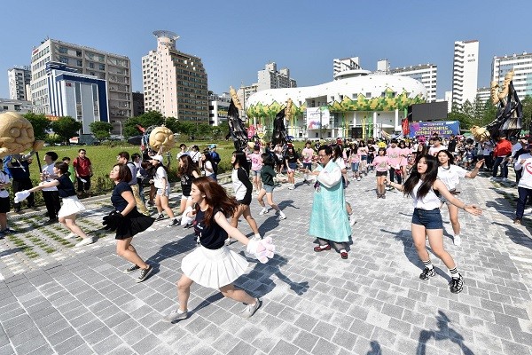 퍼레이드 출발 전 각양각색의 참여자들이 사전에 공동 연습한 플래시 몹 댄스를 선보이며 퍼레이드 출발 열기를 더하고 있다.