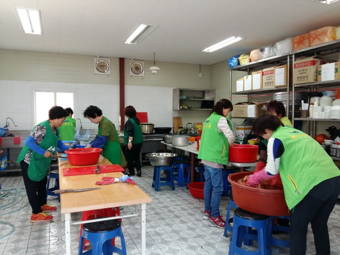 30일 경기 동두천시 소요동 새마을부녀회에서는 '사랑의 밑반찬'을 만들어 저소득층 홀몸 노인 25가구에게 전달했다. 사진은 부녀회 관계자들이 음식을 만드는 모습.(사진제공=동두천시청)