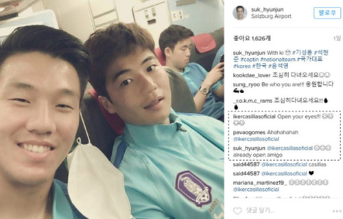 공개된 사진 속 석현준은 기성용과 카메라를 응시하며 친분을 과시했다.