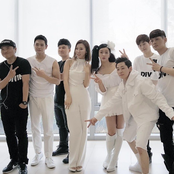공개된 사진 속에는 화이트 또는 블랙 색상의 무대의상을 맞춰 입고 포즈를 취한 이지혜, 장석현, 딘딘, 에이핑크 멤버 보미 등의 모습이 담겨있다. 특히 이들의 화기애애한 모습이 눈길을 끈다.