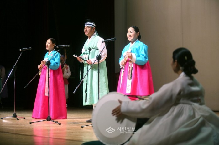 최근 강남구민회관에서 4개 분야·91팀이 경연을 펼치는 ‘강남 전통예술경연대회’의 판소리 분야에 참가한 서초문화원 판소리팀이 '남도잡가' 공연을 펼치고 있다.(사진제공=강남구청)