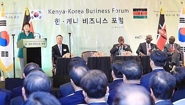 박근혜 대통령이 31일 오후(현지시간) 나이로비 한 호텔에서 열린 한-케냐 비즈니스 포럼에서 축사를 하고 있다.