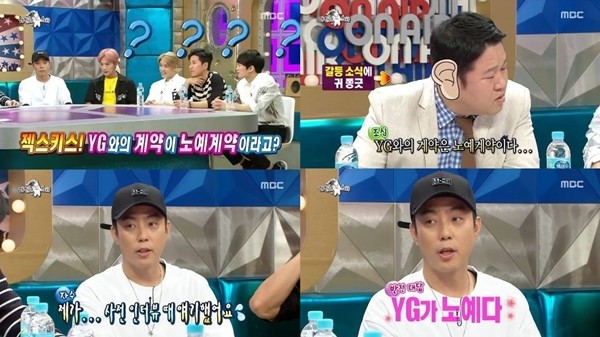 은지원은 1일 오후 방송된 MBC 예능프로그램 '라디오스타'에 출연해 YG와 계약한 것에 대한 언급으로 이목을 집중시켰다.