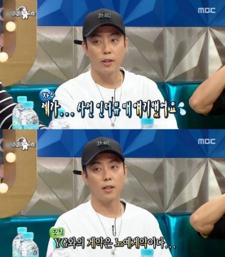 이날 방송에서 은지원은 "YG의 계약은 노예계약이다. YG가 노예다. 그만큼 너무도 좋은 조건으로 계약이 이루어졌다"고 말한 것.