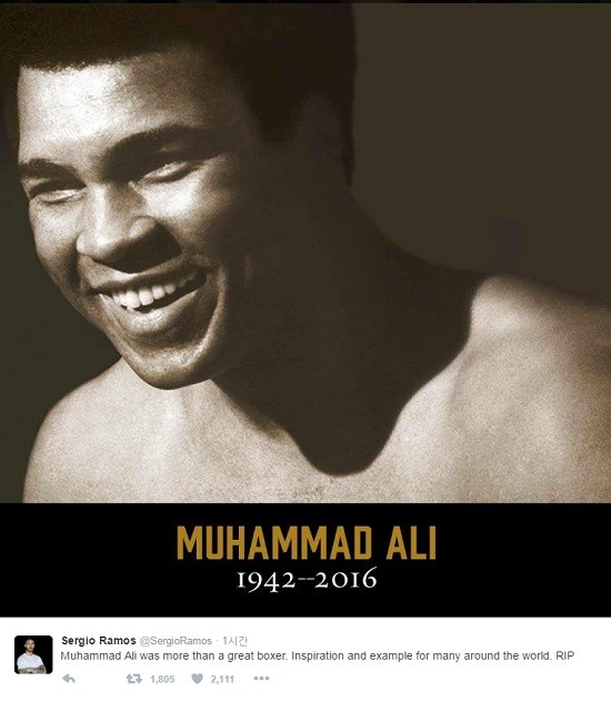 선수들 역시 애도의 뜻을 전했다. 레알 마드리드 수비수 세르히오 라모스는 "알리는 훌륭한 복서 그 이상이었다. 세계에 영감을 주었다. 평화롭게 잠들길 바란다"고 트위터에 게재했다.