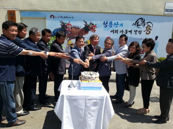 최근 경기 수원시 권선구 구운동 주민자치위원회는 지난 2일 주민자치위원회 사무실 현판식을 가졌다. 사진은 행사에 참석한 관계자들이 떡케이크를 자르는 모습.(사진제공=권선구청)