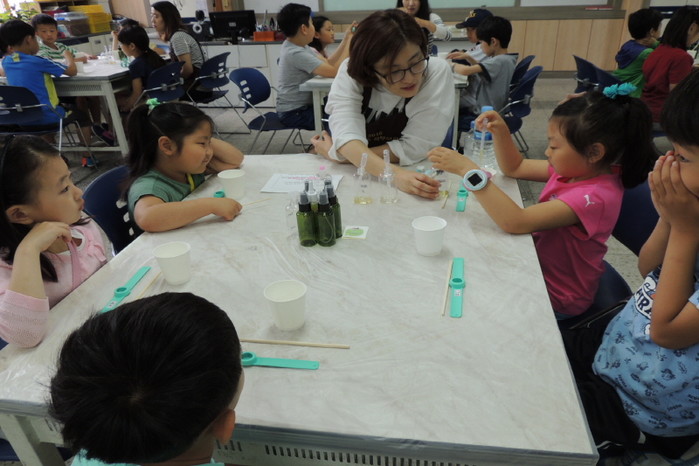지난 4일 경기 부천시 범박초등학교는 과학실·미술실에서 신청학생 100명을 대상으로 천연 모기퇴치제 만들기 체험활동을 진행했다. 사진은 학생들이 학부모에게 모기퇴치제 만드는 방법에 대해 배우는 모습.(사진제공=부천교육지원청)