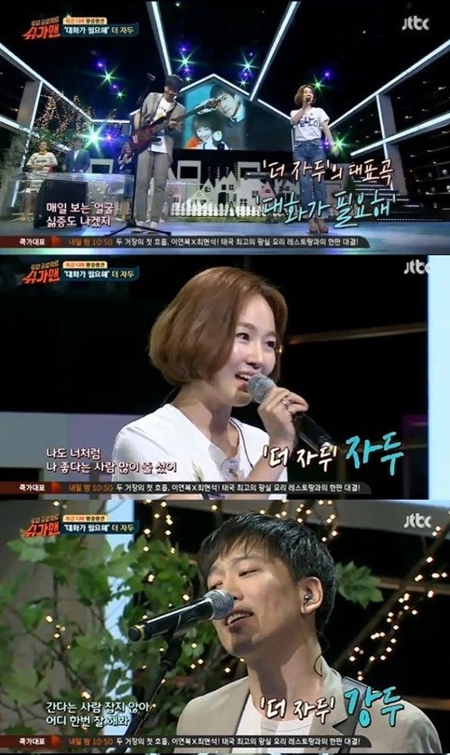 지난 7일 방송된 JTBC 예능프로그램 ‘슈가맨’에서는 혼성듀오 더 자두가 등장했다. 이들은 ‘대화가 필요해’를 부르며 지난 시절의 향수를 자극해 보는 이들의 뜨거운 호응을 이끌어냈다.