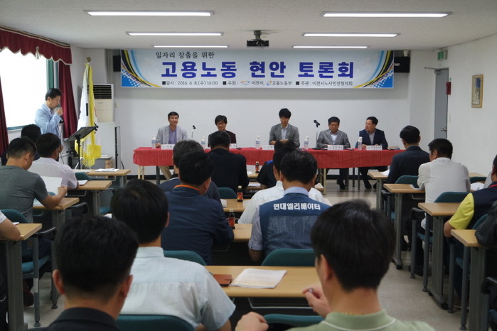 지난 8일 경기 이천시 노사민정협의회는 이천시근로자종합복지관에서 일자리 창출을 위한 고용노동 현안 토론회를 개최했다. 사진은 이날 참석한 관계자들이 토론하는 모습.(사진제공=이천시청)