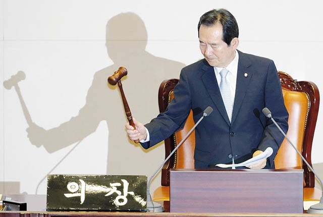 9일 오후 국회 본회의장에서 20대 국회 전반기 의장에 선출된 더불어민주당 정세균 의장이 회의진행을 알리며 의사봉을 두드리고 있다.