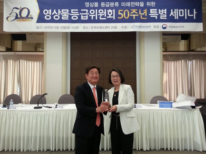 영상물등급위원회는 10일 태평로 한국프레스센터에서 열린 특별세미나에서 등급분류의 기틀을 마련한 지명혁 전영상물등급위원장에게 공로패를 수여했다.