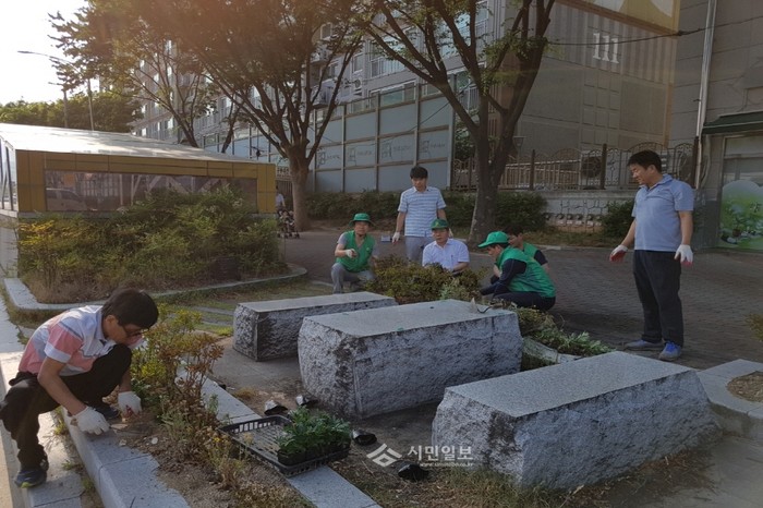 지난 10일 경북 구미시 공단2동에서는 새마을남·여지도자, 바르게살기위원회, 자연보호 협의회, 공공근로, 지역주민 등 40여명이 참여한 가운데 '꽃밭 속의 공단2동 가꾸기' 행사를 진행했다.(사진제공=구미시청)