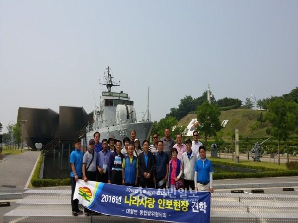 지난 10일 경기 이천시 대월면통합방위협의회는 회원 및 지역 기관단체장 30여명과 함께 평택 해군2함대사령부, 현충사 등을 방문하는 안보현장 견학을 실시했다. 사진은 행사에 참석한 관계자들이 기념촬영을 하는 모습.(사진제공=이천시청)