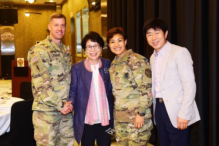 2016년 상반기 인천 부평구 한미친선협의회가 지난 14일 20여명의 위원들이 참석한 가운데 미8군 용산기지 내 메인포스트 클럽에서 개최됐다. 사진은 홍미영 구청장(왼쪽에서 두 번째)과 관계자들이 기념촬영하는 모습.(사진제공=부평구청)