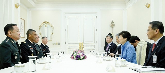 박근혜 대통령이 15일 청와대를 방문한 빈센트 브룩스 한미연합사령관을 접견하고 있다.