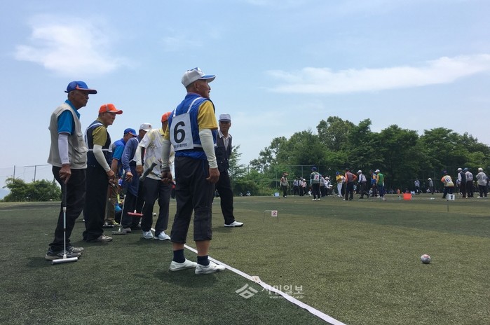 지난 14일 인천 강화군 삼산면은 석모도 체육공원에서 12개 읍·면을 대표해 60여개 팀 400여명의 선수들이 참가한 가운데 '대한노인회 삼산면분회장기 게이트볼 대회'를 개최했다. 사진은 대회에 참가한 노인들이 경기를 펼치고 있는 모습.(사진제공=강화군청)