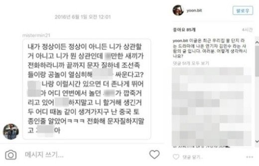이와 함께 또 다른 누리꾼들은 "저렇게까지 말한걸보면 윤빛가람이 먼저 심기를 건드린거 같은데? 한 쪽 말만 들어서는 알 수 없을 듯!(vira****)", "김민수가 욕한 것만 편집해서 올리지말고 글 내용 전부를 올려야 알 수 있을 듯(seo*****)" 등의 다소 객관적이면서 중립적인 의견을 보였다.