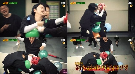 이어 김희철은 헤드기어를 쓴 아이린의 머리를 붙잡으며 몸싸움을 했다.
