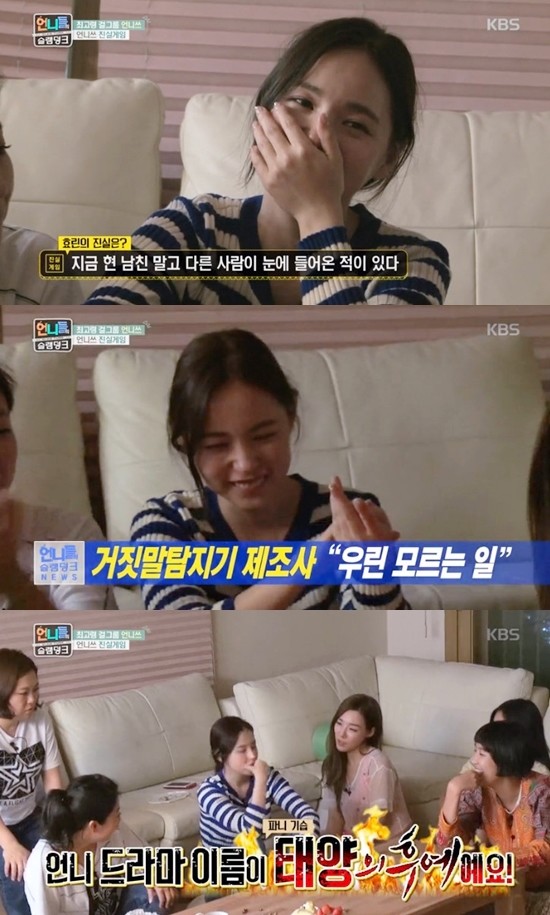 그러나 멤버들의 예상과 달리 거짓말 탐지기는 ‘거짓’이라는 결과를 알려 현장의 이들은 모두 포복절도했다. 민효린은 “‘태양의 후예’를 보면서 드라마에 너무 몰입해서..”라고 답했지만 이에 티파니는 “언니, 드라마 이름이 ‘태양’의 후예에요”라며 민효린을 저격해 한 번 더 웃음을 자아냈다.