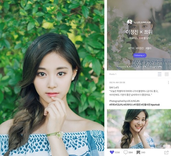 이정진은 네이버의 소셜 포토블로그 ‘폴라’에 쯔위와 함께한 화보 사진을 17일부터 21일까지 5일 간 하루 단위로 게재한다고 밝혔다.