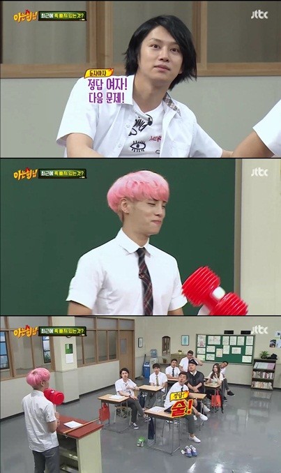 이날 전학생 종현은 '내가 제일 관심있는 것은?'이라는 문제를 냈다. 김희철은 관심 없다는 듯 "여자"라고 말한 뒤 "다음 문제 내라"라고 말했다.