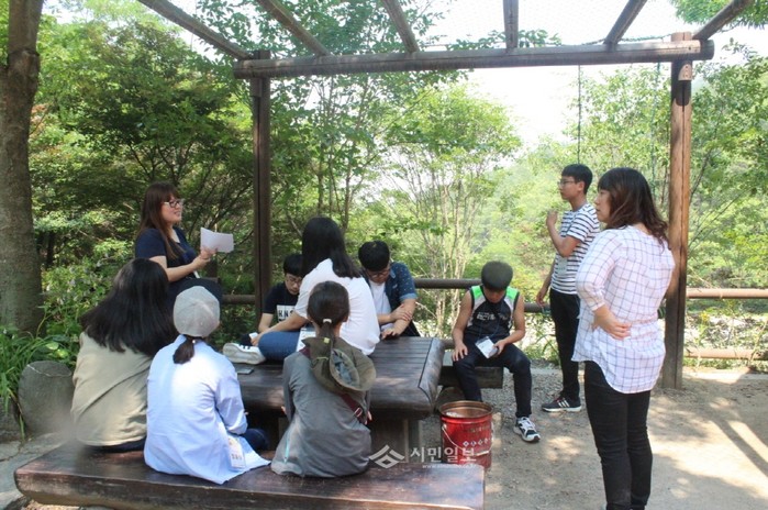 지난 18일 경북 구미시와 시 지역사회보장협의체는 지역내 중학생 10명이 참여한 가운데 '구미, 어디까지 가봤니? 2교시 장천면 수업'을 진행했다. 사진은 천생산성 산림욕장을 방문한 관계자들과 학생들이 이야기를 나누는 모습.(사진제공=구미시청)