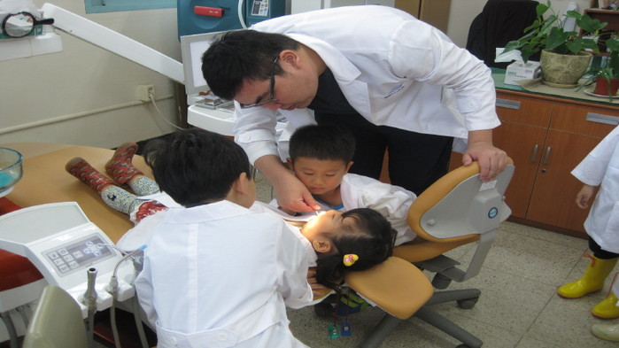 최근 경기 안산시 단원보건소 대부보건지소가 지역 아동(만 3~5세)들을 대상으로 실시한 ‘우리 동네 보건소 바로알기 체험 프로그램’에 참여한 아이들이 보건소 관계자와 함께 구강 관찰 교육을 하고 있다.(사진제공=안산시청)