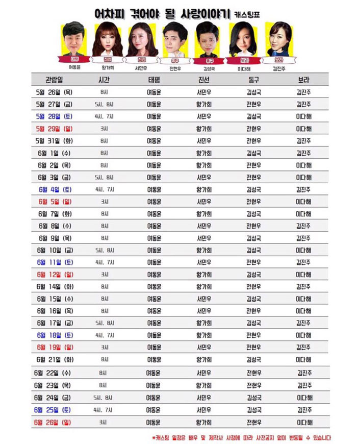 사랑에 관해 조금 더 파고들고 싶을 때 연극<어차피 겪어야 될 사랑이야기>를 통해 사랑공부를 해 보는 것은 어떨까?
