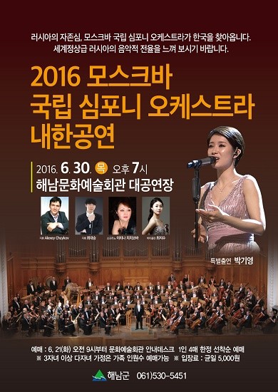 전남 해남군은 오는 30일 문화예술회관 대공연장에서 모스크바 국립 심포니 오케스트라 내한공연을 갖는다.