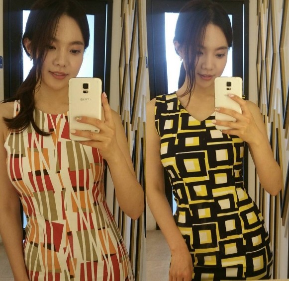 사진 속 김나희는 패턴무늬 원피스 두 종류를 입고 자신의 모습을 사진 찍고 있다. 민소매로 드러난 가느다란 팔과 잘록한 허리가 눈길을 끈다.