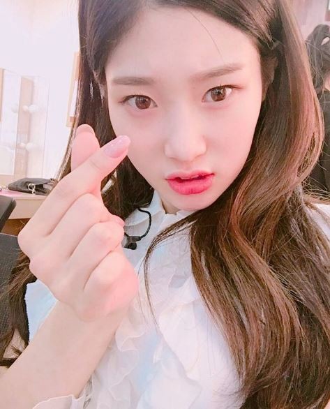사진 속에는 손가락으로 하트 모양을 만들며 애교를 선보이고 있는 정채연의 모습이 담겨있다. 특히 그의 부릅 뜬 눈이 시선을 사로잡았다.