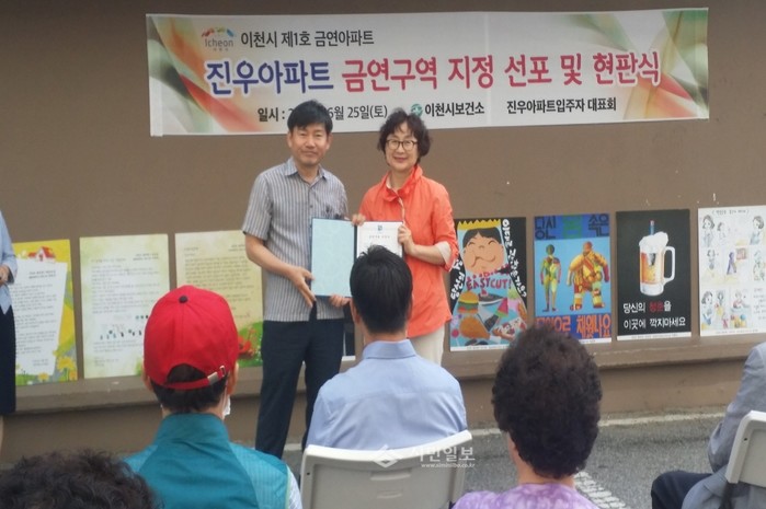 이천시보건소, 진우아파트 금연구역 지정 현판식