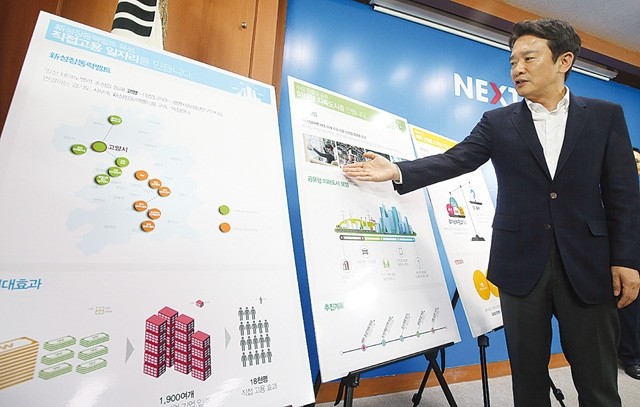 남경필 경기도지사가 29일 오후 경기도 수원시 경기도청 브리핑룸에서 기자회견을 열고 경기북부 테크노밸리 조성 계획을 밝히고 있다. 경기북부 테크노밸리는 고양시 일산구에 조성되며 2020년 입주를 시작할 계획이다.