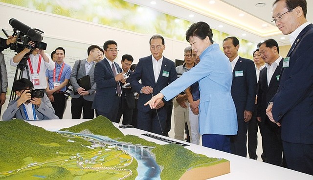 박근혜 대통령이 30일 오전 강원도 홍천군 북방면 소매곡리 에너지 신산업현장인 친환경에너지타운을 방문, 질문을 하고 있다.