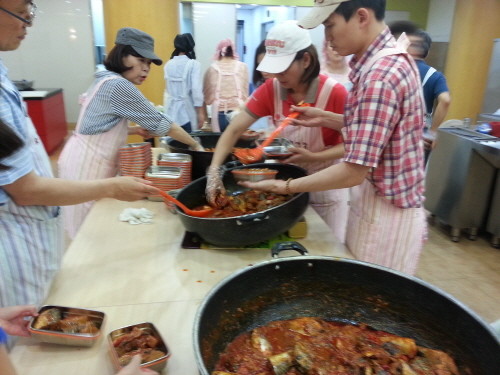 최근 서울남부보훈지청은 요리사랑 봉사단과 보비스나눔봉사단의 일반자원봉사단원 20명과 함께 저소득 국가유공자들에게 반찬을 조리해 직접 배달하는 밑반찬지원 서비스를 실시했다. 사진은 봉사자들이 반찬을 만드는 모습.(사진제공=서울남부보훈지청)