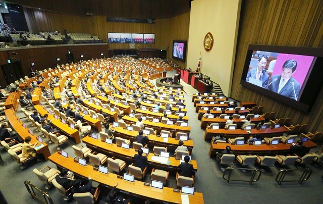 더불어민주당 김진표 의원이 4일 오전 국회에서 열린 경제에 관한 대정부 질문에서 유일호 경제부총리 겸 기획재정부 장관에게 경제 정책과 관련한 질문을 하고 있다.
