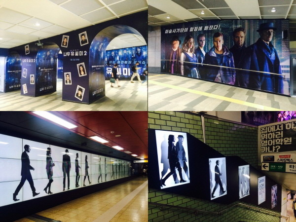 최근 강남역과 삼성역 등 유동인구가 많은 서울 지역에 '나우 유 씨 미 2(감독 존 추)'의 옥외광고가 설치됐다. 제시 아이젠버그, 마크 러팔로, 우디 해럴슨 등 주연 배우들의 다양한 모습이 담긴 외벽 래핑부터 모션 포스터, 워킹(walking) 영상 등이 보는 이들의 눈길을 사로잡는다.
