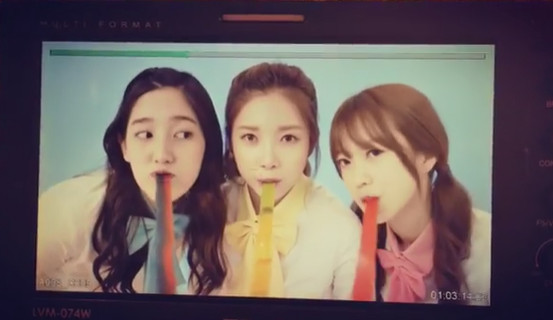 영상 속 김소희, 윤채경, 김다니는 입으로 길쭉한 젤리를 먹고 있는 모습이다. 이들의 귀여운 매력이 남성팬들의 마음을 매료시킨다.