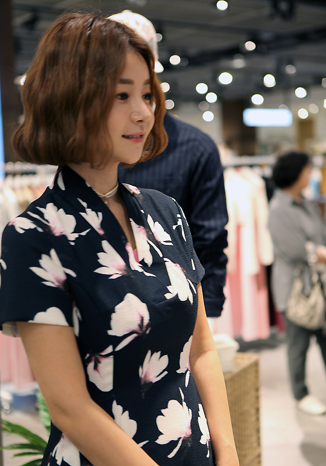 MC 겸 배우 김하정이 8일 오후 현대백화점 판교점에서 열린 더고은생활한복 팝업스토어를 방문했다. 그는 연예계 선배인 배우 민송아의 콜라보레이션 상품에 많은 관심을 보이며 대박을 기원하는 메시지를 전했다.