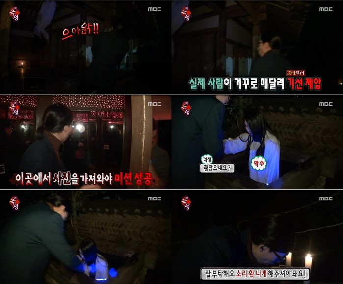 그는 영화 '곡성'을 패러디한 공포특집 '귀곡성'에 맞게 꾸민 귀신의 집을 직접 둘러봤다
