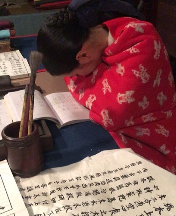 공개된 사진 속에는 그가 MBC 주말드라마 '옥중화' 촬영장에서 대본을 보다가 잠들어있는 모습이 담겨있었다.