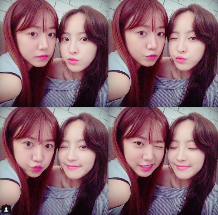 공개된 사진 속에는 두 사람이 어느 한 실내에서 얼굴을 맞대고 귀여운 표정을 짓고 있었다.