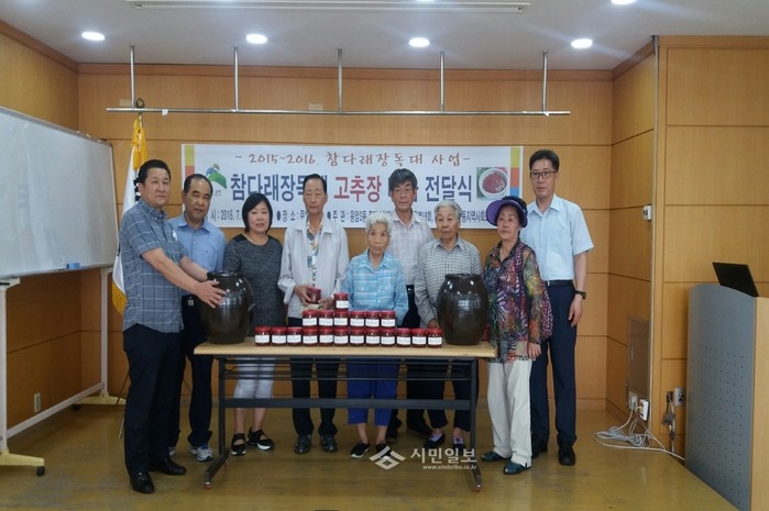 최근 서울 은평구 응암3동 주민센터에서는 주민자치위원회와 새마을부녀회가 주관해 ‘참다래 장독대사업-고추장 나누기’ 행사를 개최했다. 사진은 관계자들이 기념촬영하는 모습.(사진제공=은평구청)