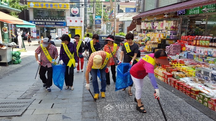 최근 경기 안산시 원곡본동은 직능단체 및 주민 90여명이 참여한 가운데 아름다운 숲의 도시 가꾸기 일환으로 다문화특구지역에서 국토대청결 운동을 실시했다. 사진은 행사 참가자들이 쓰레기를 수거하고 있는 모습.(사진제공=안산시청)