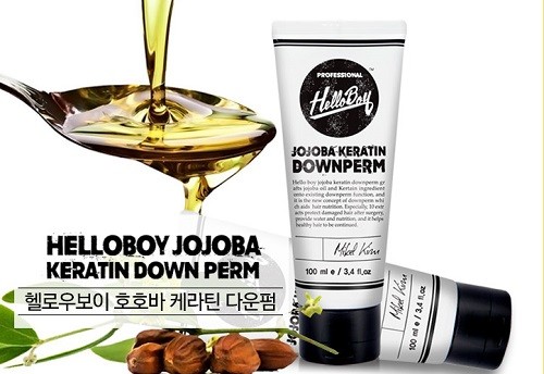 ‘헬로우보이 호호바 케라틴 다운펌’은 머리가 뜨거나 뻗쳐서 정돈하기 어려운 남성들의 옆머리를 집에서도 가라앉히고 스타일링 할 수 있는 셀프다운 펌 제품으로 중화제가 없으며 펌제 특유의 자극적인 냄새가 적다.