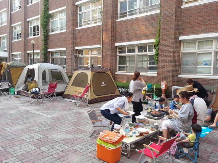최근 경북 구미시 소재 원호초등학교는 1박2일의 일정으로 학생과 학부모 80가족·300여명이 참가한 가운데 '제3회 별빛뜨락! 원호 힐링 1박2일 가족캠프'를 실시했다. 사진은 참가 가족들이 식사를 준비하는 모습.(사진제공=원호초등학교)