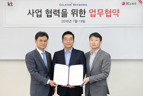 이날 MOU 체결식에는 정주명 골프존네트웍스 사업본부장, 김봉균 KT Biz사업본부장, 장길동 BC카드 글로벌본부장 등이 참석했다.